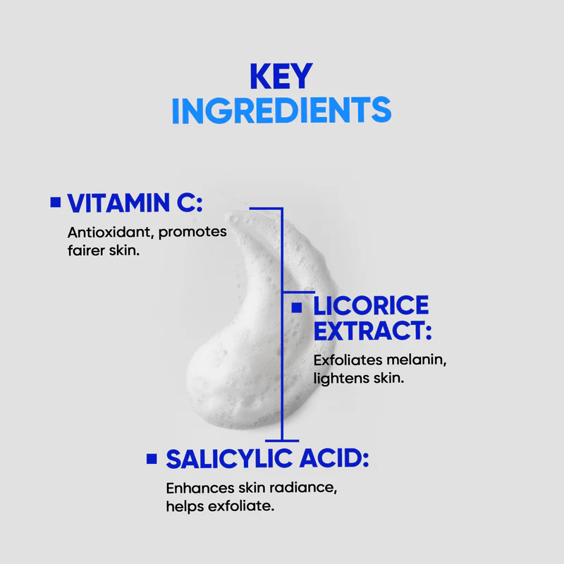 Sodium Lauryl oat Amino Acids, Anhydroxylitol, Xylitol, Glycyrrhiza Glabra Root Extract, Chondrus crispus, Tetrahexyldecyl Ascorbate, DMDM Hydantoin, Perfume, Hydrogenated Jojoba Oil, Hydroxyacetic Acid, Methylparaben, Salicylic Acid, Saccharomyces, Propylparaben, Disodium EDTA, Tocopheryi Acetate, Citric Acid, and Sodium Hydroxide.